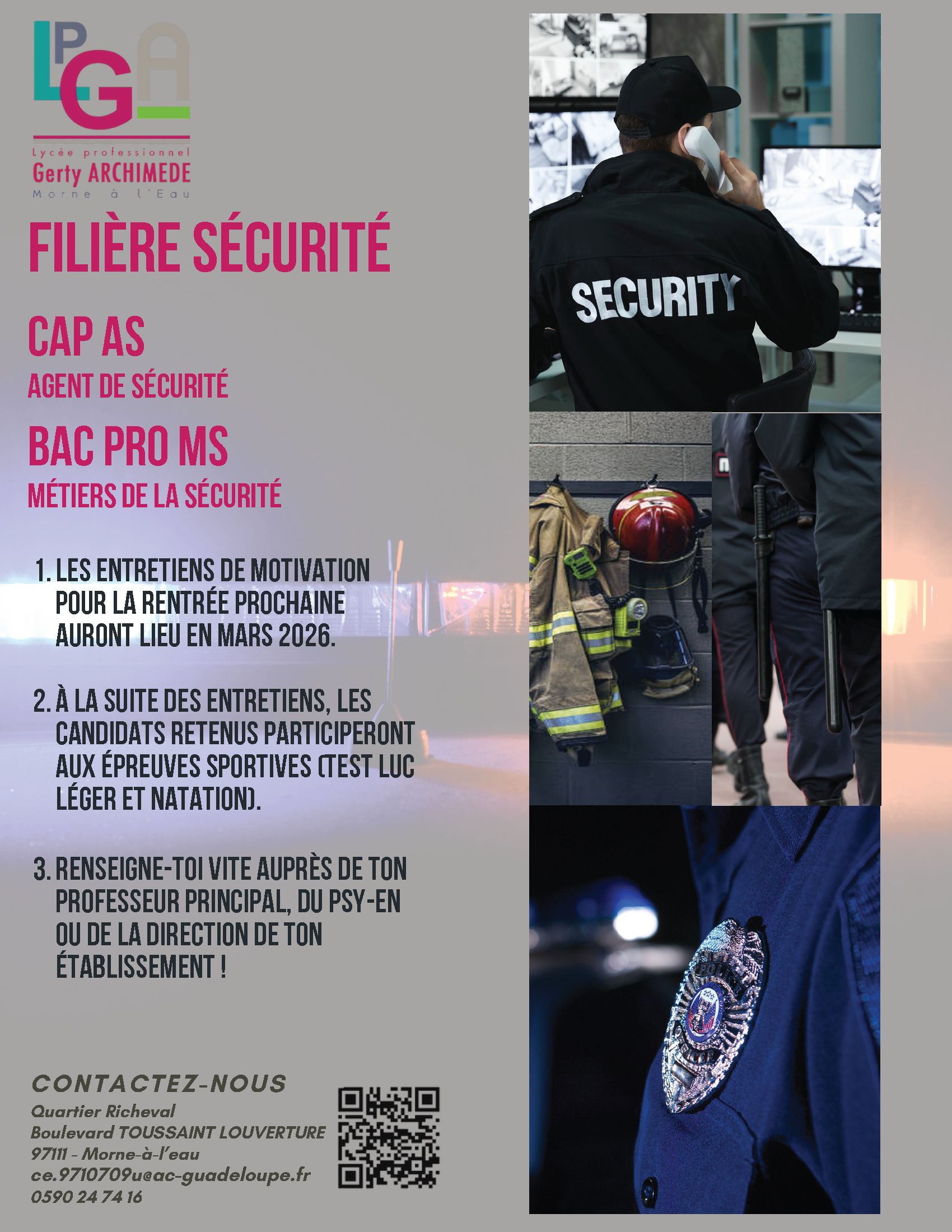 La filière Métiers de la Sécurité s’adresse aux élèves capables d’écouter, de respecter les consignes et de travailler dans un cadre structuré, souhaitant s’engager dans des parcours professionnels liés à la prévention, à la protection des personnes et des biens, ainsi qu’aux missions d’intervention.